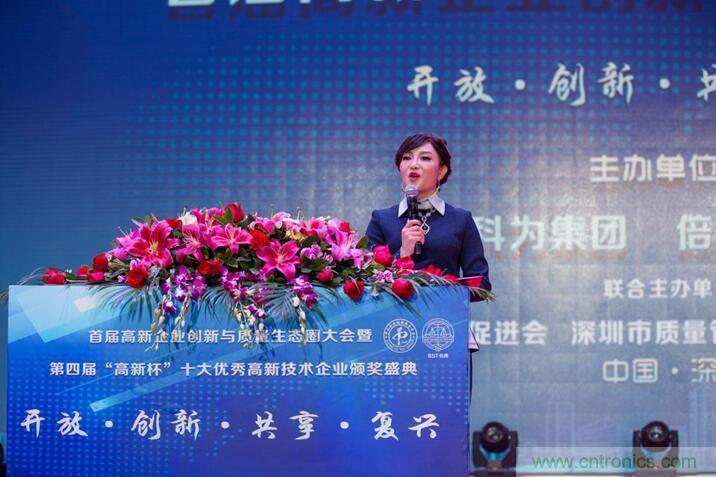 1月8日下午6:30開始的頒獎慶典分別由深圳市質(zhì)量管理與檢測促進會執(zhí)行會長、深圳市電子商會副會長、深圳市半導體與照明協(xié)會副會長、湖南工業(yè)大學工商管理碩士研究生導師、倍通檢測集團創(chuàng)始人總裁鄧華麗女士、深圳市南山區(qū)科技創(chuàng)新局劉石明局長、深圳市電子商會創(chuàng)會會長王殿甫會長、中科為集團董事長諸華軍先生致開場辭。