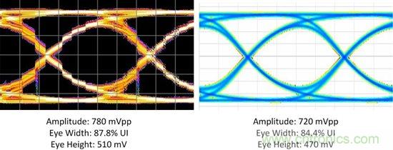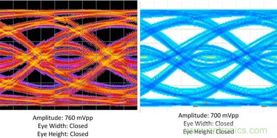 DS125BR820在筆者的系統(tǒng)輸出端打開了眼圖。圖2所示的實例1表明有足夠的余量,看來DS125BR820能補償更多的通道損耗同時使眼圖仍能保持開啟狀態(tài)。圖3所示的實例2展示了相反的情況:筆者的通道有太多的損耗,在這些運行條件下筆者很可能會看到誤碼,除非在通道的末端使用接收芯片的均衡功能。