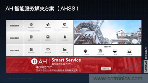 聯(lián)想新視界AH智能解決方案基于人工智能與AI技術(shù)將傳統(tǒng)工業(yè)維保提高到了一個新的水準(zhǔn)。其包括智能數(shù)據(jù),智能維保,智能仿真三大服務(wù)模塊和一系列智能引擎。各模塊之間既有機(jī)結(jié)合,作為一個完整系統(tǒng)工作,又可以作為獨立產(chǎn)品各自工作,根據(jù)客戶的需求進(jìn)行模塊裁剪。同時,聯(lián)想新視界還提供了四大硬件服務(wù)(工業(yè)維保眼鏡、虛擬交互眼鏡、虛擬互動臺、智能服務(wù)器)。AH智能服務(wù)解決方案(AH Smart Service 1.0)聚焦于服務(wù)智能化。提供了從工業(yè)互聯(lián)網(wǎng)到維修服務(wù)的完整系列產(chǎn)品和工具,將企業(yè)產(chǎn)品與AH云服務(wù)連接,通過數(shù)據(jù)監(jiān)測與分析幫助進(jìn)行設(shè)備故障預(yù)測和整體健康程度的評估。通過融合IT和OT技術(shù),使AH智能服務(wù)平臺重新定義了工業(yè)售后維保服務(wù)體系。