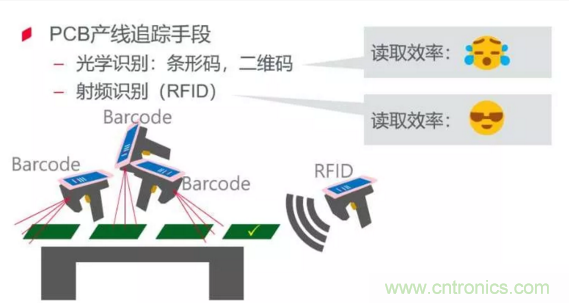 對于外觀相似的PCB板,精準(zhǔn)分揀和每一道工序的數(shù)據(jù)記錄依賴于每塊板上的身份識別碼。傳統(tǒng)的光學(xué)身份識別需要掃碼槍對準(zhǔn)板上二維碼位置和方向一一掃描,這對于柔性生產(chǎn)而言顯得效率低下。因為同一生產(chǎn)線的型號生產(chǎn)經(jīng)常切換,掃碼槍的對準(zhǔn)位置也要跟著頻繁調(diào)試和測試。