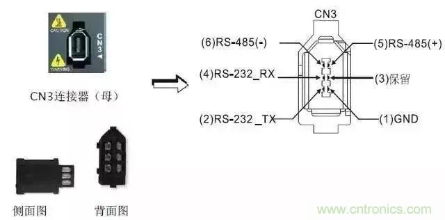 驅(qū)動器通過CN3端口與電腦PLC、HMI等上位機(jī)相連接,采用MODBUS通訊來控制驅(qū)動器,可使用RS232、RS485進(jìn)行通訊。