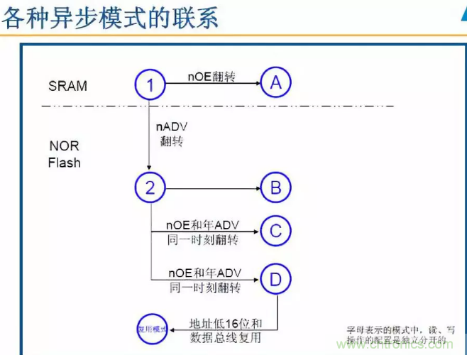 需要注意:無論數(shù)據(jù)寬度是多少,外部的FSMC_A[0]和A[0]總是對(duì)應(yīng)的。