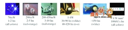 而尾燈組對于亮度需求約300 ̄500lm,一般選用1W的SMT封裝結(jié)構(gòu),單體封裝亮度約10 ̄20lm,效率可達15 ̄40lm/W。以上都是已經(jīng)應(yīng)用于車體的光源,而目前LED廠與車廠正積極合作,試著將LED導入前照系統(tǒng)(頭燈、霧燈)中,其中車廠對于頭燈的亮度需求約2000流明的白光,LED廠目前則應(yīng)用高瓦數(shù)的SMT?。蹋牛姆庋b架構(gòu),每單體封裝可輸出100 ̄200lm,效率預(yù)期提高至50 ̄100lm/W。