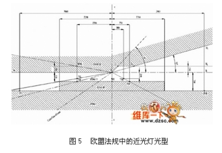 光學設(shè)計時先考慮法規(guī)需求,討論視角與強度關(guān)系,以近燈為例須針對其特殊的15度揚角設(shè)計,如圖5所示。在傳統(tǒng)的燈具設(shè)計上由先期的利用反射罩配合透鏡刻紋作角度與強度的控制,演變成為利用反射罩直接控制強度角度,也發(fā)展出利用成像方式的魚眼透鏡設(shè)計法。不論何種的設(shè)計方式都須先考慮選用光源的特性,特別是角度與強度的光型輸出(Beam?。穑幔簦簦澹颍睿?,對傳統(tǒng)的光源而言,大多為柱狀光源,可產(chǎn)生類似蝴蝶外型的光型輸出,進而發(fā)展出來與之搭配的透鏡、反射罩、擋板、透鏡等光學組件。而利用LED作為光源設(shè)計燈具時,需重新考慮其光學特性由傳統(tǒng)的柱狀光源變?yōu)槠矫婀庠矗ú煌姆庋b設(shè)計有不同的光型輸出),進而搭配外部的光學組件而產(chǎn)生不同組合以應(yīng)用于不同產(chǎn)品,依照德國車燈大廠HELLA的設(shè)計分類,可將光源分為八大類,如圖6 所示。LED目前的單位面積發(fā)光量尚不及鹵素燈泡與放電式燈泡,想得到相同的流明輸出,LED需要較大的封裝面積。隨著光源輸出面積的增加,光學設(shè)計的難度也隨之提升,所以在現(xiàn)有的概念車上,都以模塊化光學設(shè)計取代既有的單一燈室設(shè)計,利用多組燈源達到傳統(tǒng)燈具的照明水平,除了降低光學設(shè)計的難度,也增加車體造型的設(shè)計感。