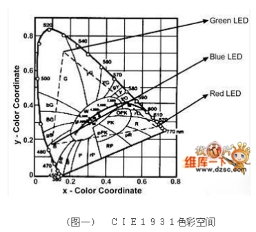 這類LED光源的簡(jiǎn)單開(kāi)迴路架構(gòu)方式有個(gè)潛在的問(wèn)題,由于LED的光學(xué)特性會(huì)受到運(yùn)作條件的影響,因此組合后的RGB光源輸出的亮度以及色度都會(huì)變化。同時(shí),每顆LED元件也不盡相同,因此造成RGB光源的輸出產(chǎn)生更多變化,(圖二)與(圖三)就描述了幾個(gè)LED變動(dòng)的范例。