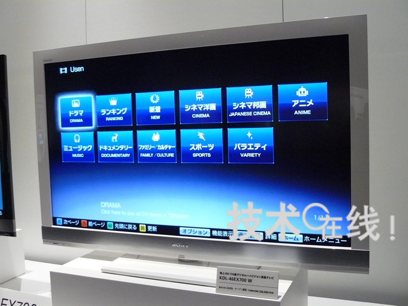 EX700系列還強(qiáng)化了網(wǎng)絡(luò)功能。新配備了名為“BRAVIA網(wǎng)絡(luò)頻道”的功能。用戶可利用索尼自主設(shè)計(jì)的操作畫面搜索并使用美國谷歌的視頻共享服務(wù)“YouTube”、USEN的VOD服務(wù)“U-NEXT”,acTVila的VOD(video on demand)服務(wù)“acTVila Video Full”。該公司預(yù)定2010年春季以后陸續(xù)啟動(dòng)這些服務(wù)。