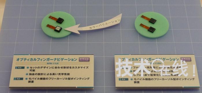 三美電機(jī)開(kāi)發(fā)出了厚度僅為2mm的光學(xué)式輸入傳感器模塊“SFN-11GU”。設(shè)想用于用一根拇指在手機(jī)畫(huà)面上進(jìn)行操作的用途。解說(shuō)員表示,“如果是觸摸面板的話,大多數(shù)情況下需要一手拿著手機(jī),用另一只手的手指碰觸畫(huà)面進(jìn)行操作,而有些顧客希望可以只用單手進(jìn)行操作”。該產(chǎn)品已經(jīng)用于便攜終端產(chǎn)品中。