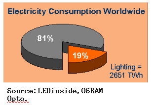 依現(xiàn)階段照明占全球電力消耗的比重達(dá)19%,耗能總量達(dá)到2651 TWH。如果能夠?qū)F(xiàn)有的光源替換成節(jié)能光源,預(yù)計(jì)將可以省下30%能源消耗。若再進(jìn)一步將節(jié)能光源與感測(cè)器、智能電網(wǎng)等相關(guān)應(yīng)用作結(jié)合,預(yù)計(jì)還可以再節(jié)省30%的能源消耗。 如果到2030年能夠節(jié)省50%的能耗,相當(dāng)于減少20億桶的石油的二氧化碳排放量。