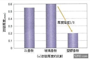 有關(guān)封裝薄形化的發(fā)展,以TDK與半導體能源研究所共同開發(fā)的照度感測元件為例,它是採用塑膠材料當作基板,開發(fā)厚度只有與「0402size」、「0603size」等被動元件同等級的照度感測元件;相較之下傳統(tǒng)玻璃基板的照度感測元件卻高達(圖8),該公司也在開發(fā)內(nèi)建可以使光電流增幅100倍增幅電路的PhotoIC,外形尺寸則與「2015size」同等級(圖8(b))。