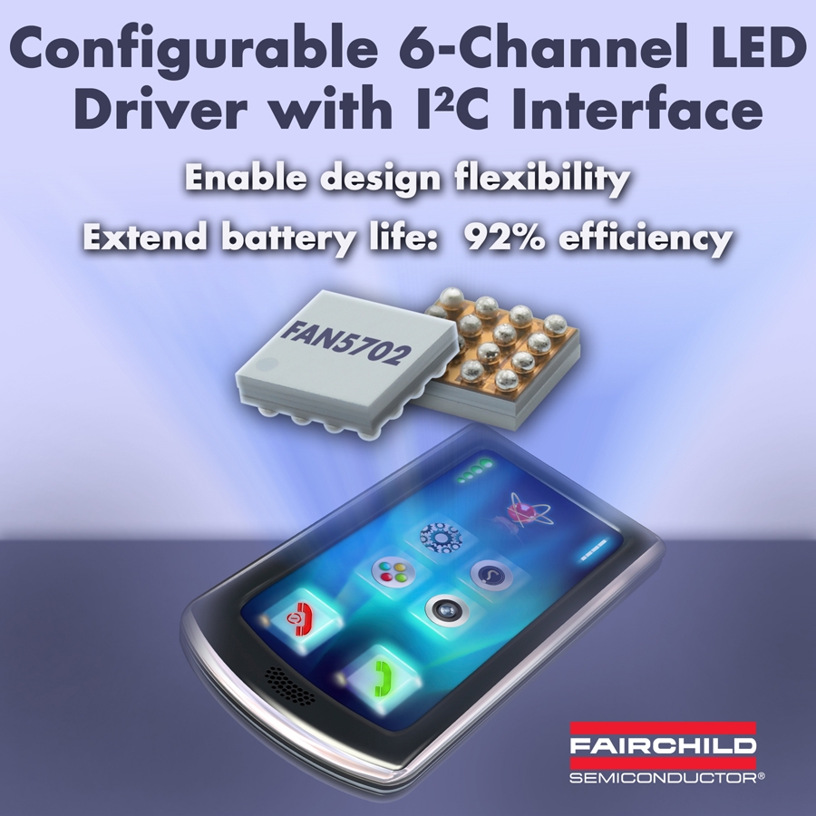 - FAN5702是具有I2C 接口的可配置、180mA、6通道LED驅動器