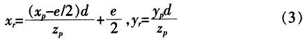 將式(2)帶入式(1)得點(diǎn)P在投影平面的坐標(biāo)(xr,yr):