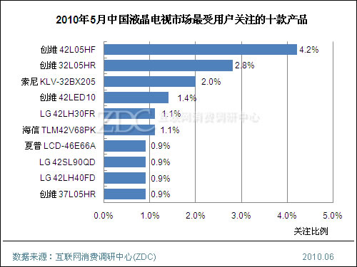 (圖)2010年5月中國液晶電視市場最受用戶關(guān)注的十款產(chǎn)品