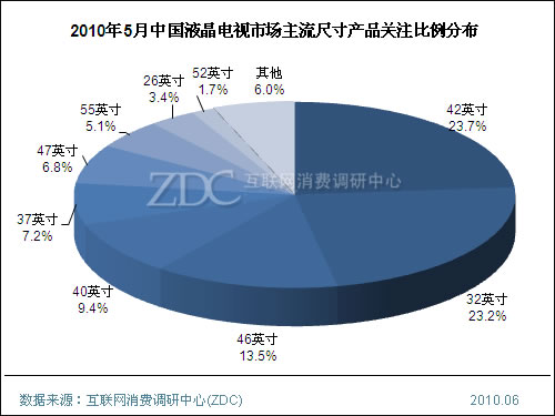 (圖)2010年5月中國液晶電視市場主流尺寸產(chǎn)品關(guān)注比例分布