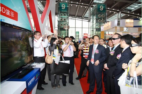 部省領(lǐng)導(dǎo)在去年的彩電節(jié)上參觀并體驗(yàn)長(zhǎng)虹集團(tuán)的3D技術(shù)