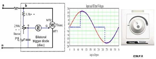 圖9. 可控硅調(diào)光的電路圖和波形圖