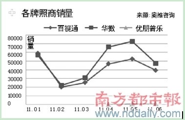 智能電視的興起不僅給量額齊跌的彩電市場染上一抹亮色,也給內(nèi)容端的上位提供契機,數(shù)據(jù)顯示,由于華數(shù)、百視通較早拿到牌照,已在終端市場上形成了雙雄鼎立的局面。