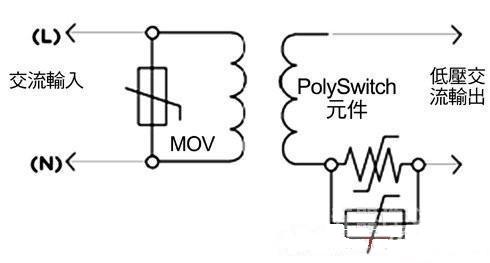 在照明系統(tǒng)中采用第二類(lèi)功率源可成為降低成本、提高彈性的重要因素之一。固有的有限功率源,如變壓器、電源供應(yīng)器或電池等,可以包含保護(hù)組件,只要不依靠它們限制第二類(lèi)功率源的輸出即可。非固有型的有限功率源,按照定義,具有一個(gè)分立保護(hù)組件,當(dāng)電流和能量輸出達(dá)到預(yù)定值時(shí)它會(huì)自動(dòng)中斷輸出,各種電路保護(hù)組件都有助于提供LED照明應(yīng)用第二類(lèi)功率源的安全操作。圖4表示了一種協(xié)同保護(hù)策略的工作原理,它在交流輸入上采用了一個(gè)MOV,在輸出電路分支上采用了一個(gè)PolySwitch組件,可以幫助廠商滿(mǎn)足UL 1310第35.1小節(jié)針對(duì)開(kāi)關(guān)和控制裝置的過(guò)載試驗(yàn)要求。