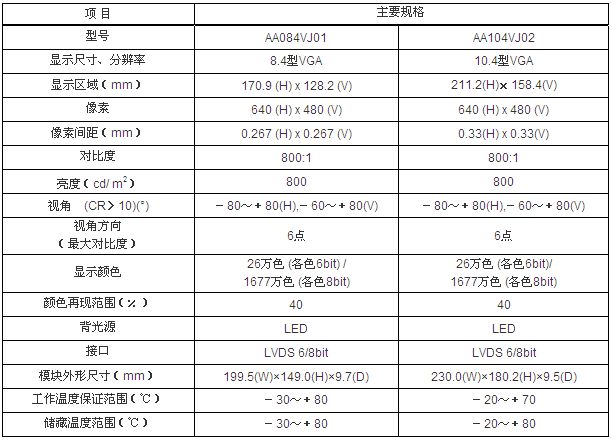 本公司為滿足上述需求,本次特發(fā)售帶有LVDS接口,具有高亮度、高對比度、寬視角等特點(diǎn)的8.4型、10.4型VGA液晶模塊。