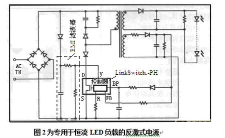 應(yīng)該說如今有多種類型控制器可以構(gòu)建恒流LED驅(qū)動電源-LED負(fù)載的反激式電源。在此僅以集成多項(xiàng)控制器LinkSwitch.-PH構(gòu)建的LED驅(qū)動器為例作分析。