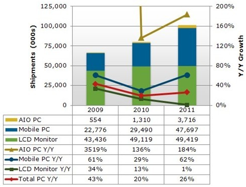 - 2011年下半年電腦總出貨量達5千340萬臺