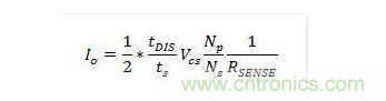 在二極管導(dǎo)通時間期間,輸出電壓與二極管正向壓降之和反射到輔助繞組為(VO+VF)*Na/Ns。通過在二極管導(dǎo)通時間結(jié)束時對繞組電壓進行采樣,可以獲得輸出電壓信息。輸出電流(Io)可使用MOSFET的峰值漏極電流(Ipk)以及電感電流的放電時間(tDIS)來估算,因為在穩(wěn)態(tài)下,輸出電流(Io)與二極管電流(ID)的平均值相同。輸出電流估算通過峰值檢測電路來確定漏極電流的峰值,并利用電感放電時間和開關(guān)周期(ts)來計算輸出電流。將此輸出信息與內(nèi)部精確參考電壓進行比較,產(chǎn)生誤差電壓(VCOMI),它可以確定MOSFET的占空比。使用Fairchild的創(chuàng)新TRUECURRENT技術(shù),可精確控制恒定輸出電流。