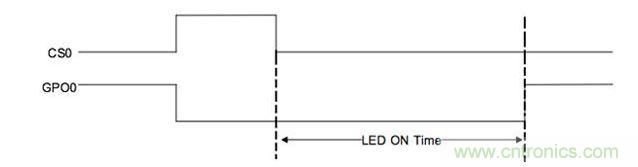 通常對(duì)于電容式按鍵來(lái)說(shuō),LED直接位于按鍵之下,從中心位置發(fā)光。用戶手指放在按鍵上,LED就會(huì)被隱藏起來(lái)。在此情況下,如果用戶手剛從按鍵上拿開(kāi)LED燈就馬上關(guān)閉,那么用戶可能難以確定按鍵操作到底成功沒(méi)有。為此,我們可以讓LED在觸摸結(jié)束后保持“開(kāi)啟”一小段時(shí)間,從而為用戶提供更好的視覺(jué)反饋。這種特性就叫LED開(kāi)啟時(shí)間,如圖2所示。