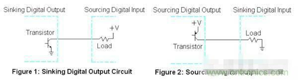 這里有必要提一下控制里常會(huì)提到的 Sinking(灌電流)和Sourcing (拉電流)的概念。借用一下數(shù)字控制里面的兩張圖說話: