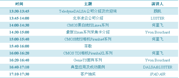 秉承客戶至上,以市場需求為導向,感謝一路上有新老客戶的陪伴支持與理解,才使得凌云公司在前進的道路上有足夠的動力與方向,看到了美好的視覺給人們帶來的豐富多彩的生活。此次答謝會得到了Teledyne DALSA的高度重視與支持,屆時,DALSA亞太區(qū)OEM技術總監(jiān)Yvon Bouchard、 DALSA線掃描產品資深產品經理何星飛等大咖將會帶來國際前沿的技術與產品資訊: