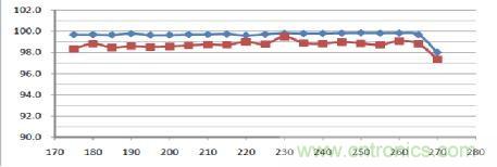 當(dāng)環(huán)境溫度從35度升高到85度時,它的總效率一直在98%以上。