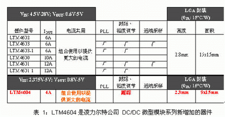- 新推出的LTM4604滿足超薄、緊湊的要求