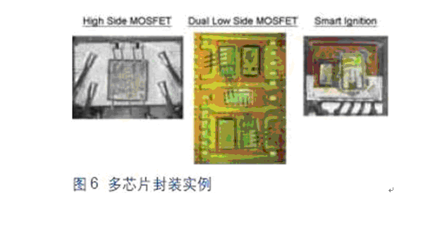圖6所示為目前車載系統(tǒng)中采用多芯片封裝的幾個(gè)實(shí)例。這些智能化器件可以提供更高的系統(tǒng)性能監(jiān)控能力,通過(guò)集成保護(hù)功能提高功率系統(tǒng)的可靠性。如過(guò)流、過(guò)壓和過(guò)熱保護(hù)等功能都是這類產(chǎn)品的標(biāo)配。當(dāng)器件感測(cè)到有可能發(fā)生上述異常狀況時(shí),能夠把功率MOSFET置于自我保護(hù)整個(gè)系統(tǒng)的環(huán)境中。此外,這些器件還集成有附加診斷功能,用以監(jiān)控負(fù)載開(kāi)路或短路,有助于指導(dǎo)汽車機(jī)械裝置隔離和糾正車輛中出現(xiàn)的問(wèn)題。