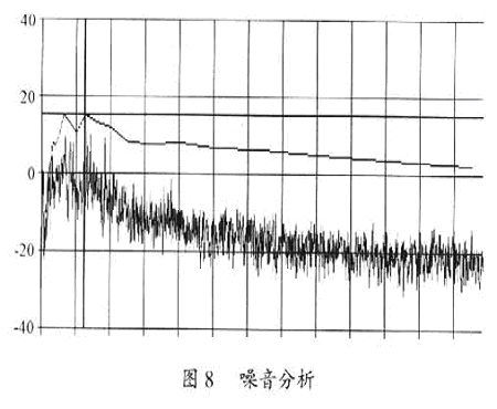 經(jīng)過(guò)以上電磁兼容性設(shè)計(jì),開(kāi)關(guān)電源的輸出電壓調(diào)整率△V0/V0=O.12/12=l%,達(dá)到了預(yù)期設(shè)計(jì)要求。圖7是紋波電壓輸出圖,圖8是其工作時(shí)的噪音分析圖。