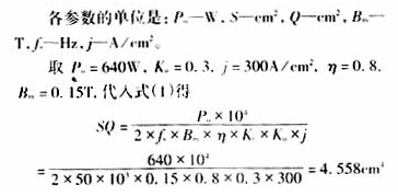 計(jì)算并確定磁芯型號:磁芯的幾何截面積S和磁芯的窗口面積Q與輸出功率Po存在一定的函數(shù)關(guān)系。對于半橋變換器,當(dāng)脈沖波形近似為方波時(shí)為