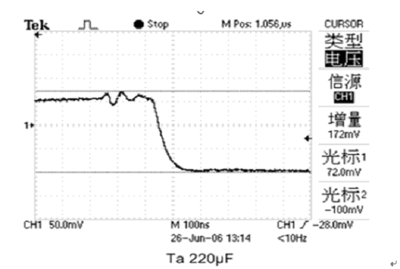 圖10. 16 V/220μF普通鉭電容的測(cè)試波形
