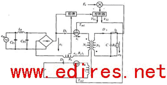 由上面的分析和測(cè)量可見(jiàn),采用兩輸入的DC/DC變換器的好處。它既抑制輸入電流的高頻分量,降低輸出電壓e0的紋波,又提高了功率因數(shù)。因此,使整個(gè)變換器的性能得到令人滿意的改善。如果采用多于兩個(gè)輸入(如三輸入以上),可推想在抑制高頻分量和降低e0紋波方面會(huì)有更好的效果。但是,其控制部分的參數(shù)必須經(jīng)過(guò)優(yōu)化。