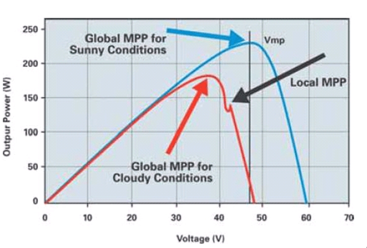 作為一種替代解決方案,人們提出了一種增量自感算法,通過定義一個(gè)峰值,然后,求解功率曲線的微分,從而得出MPP點(diǎn)。雖然這種方法沒有因?qū)挿秶袷幰鸬牡托蕟栴},但是,它存在把本地峰值誤設(shè)為MPP點(diǎn)的可能。