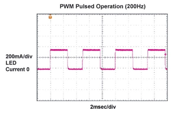 控制LED燈源亮度的最好辦法是通過一個(gè)低頻PWM脈沖調(diào)制LED電流。使用這種方法,LED電流根據(jù)占空比的變化觸發(fā)脈沖,同時(shí)保持電流幅度恒定。這樣,器件發(fā)出的光波波長在整個(gè)調(diào)節(jié)范圍內(nèi)保持不變。