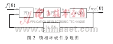 圖1所示的控制環(huán)節(jié)可以很方便地用鎖相環(huán)硬件電路來實現(xiàn),其原理如圖2所示。圖中,PD為相差比較器,其傳遞函數(shù)為:ud=kp•Δθ;VCO為壓控振蕩器,其傳遞函數(shù)為