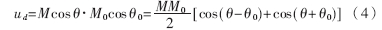 式(4)中第二項是一個倍頻的交流成分,若θ-θ0是常量,第一項則為直流成分。而且,若θ-θ0接近于-π/2,則cos(θ-θ0)=sin(θ-θ0+π/2)≈θ-θ0+π/2。故對于ud的直流成分來說,模擬相乘器相當(dāng)于一個相位的減法器。