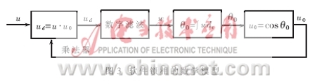 軟件鎖相原理是用計算機軟件實現(xiàn)上述鎖相過程。將圖2的分頻系數(shù)N取1,設(shè)輸入u=Mcosθ,輸出u0=M0cosθ0,其中θ和θ0是隨時間而變化的量,則