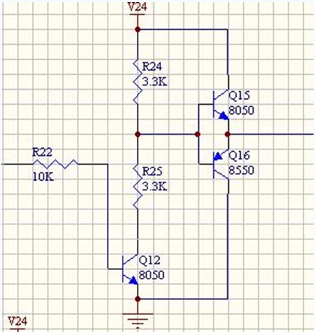 后面三極管和電阻,穩(wěn)壓管組成的電路進一步放大信號,驅動場效應管的柵極并利用場效應管本身的柵極電容(大約1000pF)進行延時,防止H橋上下兩臂的場效應管同時導通(“共態(tài)導通”)造成電源短路。