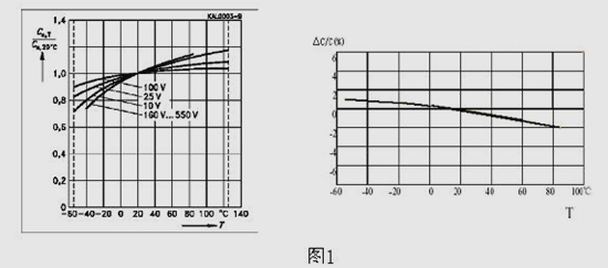 鋁電解電容器在容量偏差由于其固有的材料、結構特性的影響,在額定電容量及容量溫度穩(wěn)定性方面偏差較金屬化電容器有較大的差距:鋁電解電容器由于無法控制鋁極板氧化面積致使容量無法準確控制,而金屬化電容器產品可以通過直接控制極板面積精確控制產品電容量,偏差可以控制在-2%~+2%之間,對線路的精確性提供了可靠的保證。由于金屬化膜電容器中絕緣介質材料為高分子聚合物(聚丙烯、聚酯等)薄膜,可以通過控制薄膜厚度(精度在0.2微米以上)來提高電容器產品的額定電壓,而鋁電解電容器由于絕緣介質是鋁箔表面的氧化鋁層,難以控制氧化層厚度及均勻性,所以難以達到高的耐壓及過壓倍數。鋁電解電容器額定電壓較低(通常≤450V DC),而金屬化電容器產品應用于GVF系列高壓變頻器上的直流濾波電容器單臺額定電壓已經達到20000V DC 。該公司原來使用52段鋁電解電容器串連使用,非常煩雜,采用金屬化膜電容器大大節(jié)省了在鋁電解電容器串連過程中煩雜的均壓工作,節(jié)約了材料及人工成本,提高了效率。這種新型金屬化電容器額定紋波電流可以達到同等容量鋁電解電容器額定紋波電流的幾倍到幾十倍,而且鋁電解電容器過流能力只有1.1IN ,金屬化電容器過流能力可以達到1.3 IN,從而避免了在中大功率系統(tǒng)中,為達到系統(tǒng)額定電流而增大鋁電解電容器并聯(lián)數,犧牲容量而造成的不必要的浪費,尤其是針對急劇的電壓變化(高DV/DT)需要電容器提供瞬時大電流加以電壓支撐或吸收時,鋁電解電容器幾乎可以說沒有作用,當負載電機工作在四象限工況下時,逆變橋工作在整流狀態(tài)下需要電容器提供損失電能吸收時,金屬化膜電容器較鋁電解電容器優(yōu)勢非常明顯。同時電容器容抗是隨著頻率的變化呈反比例關系出現的,而電容器的有功損耗是隨著電流的增大而增大,且為電流平方成正比關系,所以電容器的損耗則成為在電容器運行過程中安全可靠的至關重要的因素。電容量溫度穩(wěn)定性參照圖1所示,金屬化電容器容量溫度變化率僅為鋁電解電容器的10%左右,且金屬化電容器的損耗僅為鋁電解電容器的1%左右,發(fā)熱量小溫升低,從而進一步保證了系統(tǒng)的穩(wěn)定性。