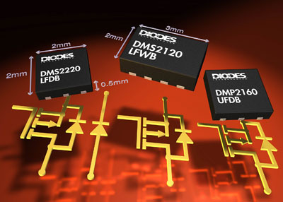 Diodes公司應(yīng)用的高熱效率、超小型DFN封裝的雙器件組合技術(shù),推出便攜式充電設(shè)備的開關(guān)。