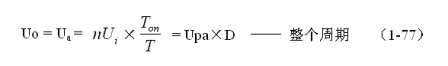 在變壓器開關(guān)電源中,正激式輸出電壓的計(jì)算比較簡(jiǎn)單,而反激式輸出電壓的計(jì)算相對(duì)來說很復(fù)雜,因此,如果沒有十分必要,最好采用半波平均值的概念和(1-75)式,通過計(jì)算正激電壓的半波平均值,來推算反激式輸出電壓的半波平均值。因此,(1-75)式主要還是用來計(jì)算反激式輸出電壓的半波平均值的。
