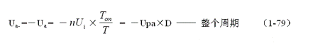 (1-75)式就是用來計(jì)算單激式變壓器開關(guān)電源輸出電壓半波平均值Upa和Upa-的表達(dá)式。上面(1-73)、(1-74)、(1-75)式中,我們分別把Upa和Upa-定義為正半波平均值和負(fù)半波平均值,簡(jiǎn)稱半波平均值,而把Ua 和Ua- 稱為一周平均值。從圖1-16-b可以看出,Upa正好等于Up,但Upa-并不等于Up- ,Upa- 小于Up- 。