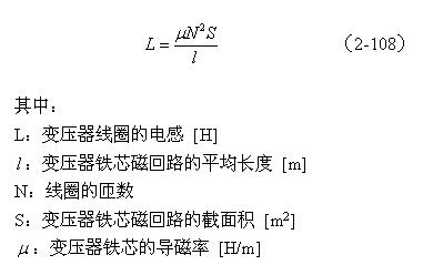 【說(shuō)明】上式是用來(lái)計(jì)算變壓器線圈電感的計(jì)算公式。由于變壓器鐵芯的磁回路基本是封閉的,變壓器鐵芯的平均導(dǎo)磁率相對(duì)來(lái)說(shuō)比較大。鐵芯的導(dǎo)磁率一般在產(chǎn)品技術(shù)手冊(cè)中都會(huì)給出,但由于大多數(shù)開(kāi)關(guān)電源變壓器的鐵芯都留有氣隙,留有氣隙的磁回路會(huì)出現(xiàn)磁場(chǎng)強(qiáng)度以及磁感應(yīng)強(qiáng)度分布不均勻,因此,(2-108)式中的導(dǎo)磁率只能使用平均導(dǎo)磁率,技術(shù)手冊(cè)中的數(shù)據(jù)不能直接使用。