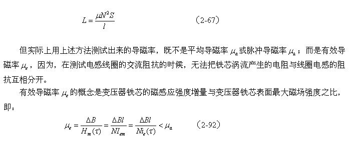 很多人在測試變壓器鐵芯導磁率的時候,都是通過測試變壓器線圈電感量的方法來測試變壓器鐵芯的導磁率;這種測試方法實際上就是測試電感線圈的交流阻抗,然后把阻抗換算成線圈的電感量,最后再根據(jù)(2-67)式求出變壓器鐵芯的導磁率。