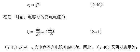 (2-39)式中,i2為流過(guò)電阻R的電流,或電容器的充電電流,u2為電容C兩端電壓。與分析變壓器初級(jí)線圈中的勵(lì)磁電流一樣,如果把積分電路的時(shí)間常數(shù)取得足夠大,電阻的阻值也取得足夠大,則在一個(gè)周期內(nèi)電容兩端的充電電壓u2相對(duì)電阻的電壓降是可以忽略的。則(2-39)式可以改寫為: