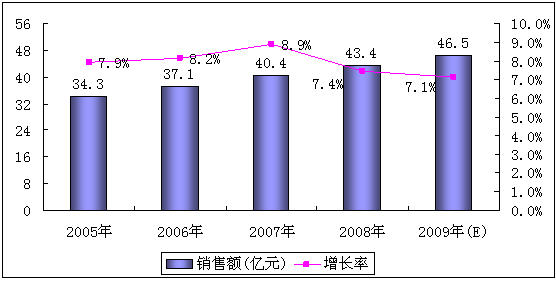 圖9:2005-2009年中國通信電源市場銷售額增長情況