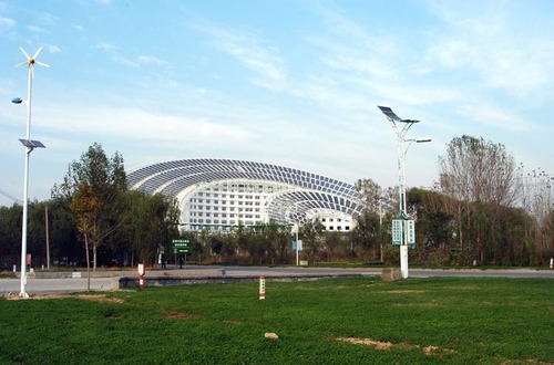2009年12月24日,圣誕夜,全球最大太陽能辦公大樓正式啟用。這座名為“日月壇-微排大廈”的太陽能大樓,總建筑面積達(dá)到7.5萬平方米,集展示、科研、辦公、會議、培訓(xùn)、賓館等功能于一身,采用全球首創(chuàng)太陽能熱水供應(yīng)、采暖、制冷、光伏發(fā)電等與建筑結(jié)合技術(shù),是目前世界上最大的集太陽能光熱、光伏、建筑節(jié)能于一體的高層公共建筑。